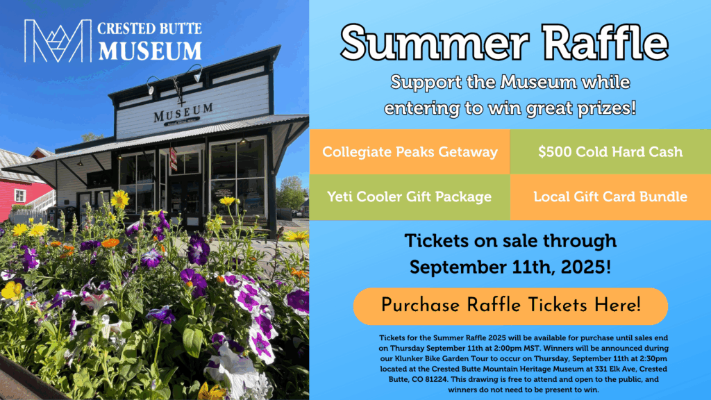 Your support makes it possible for the Crested Butte Museum to create educational programming for all ages, preserve our historical collections, and maintain our exhibits. Together, we can inspire wonder in our past by preserving the history of Crested Butte and Gunnison Valley.